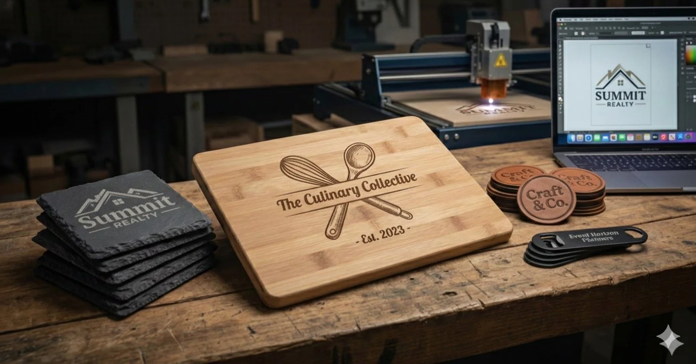 Elevate your brand or gift with professional graphic engraving. This tier is designed for detailed logos, custom artwork, and vector graphics. Ideal for small businesses looking for branded merchandise, realtors gifting custom cutting boards, or anyone wanting to turn a photo or sketch into a permanent engraving.